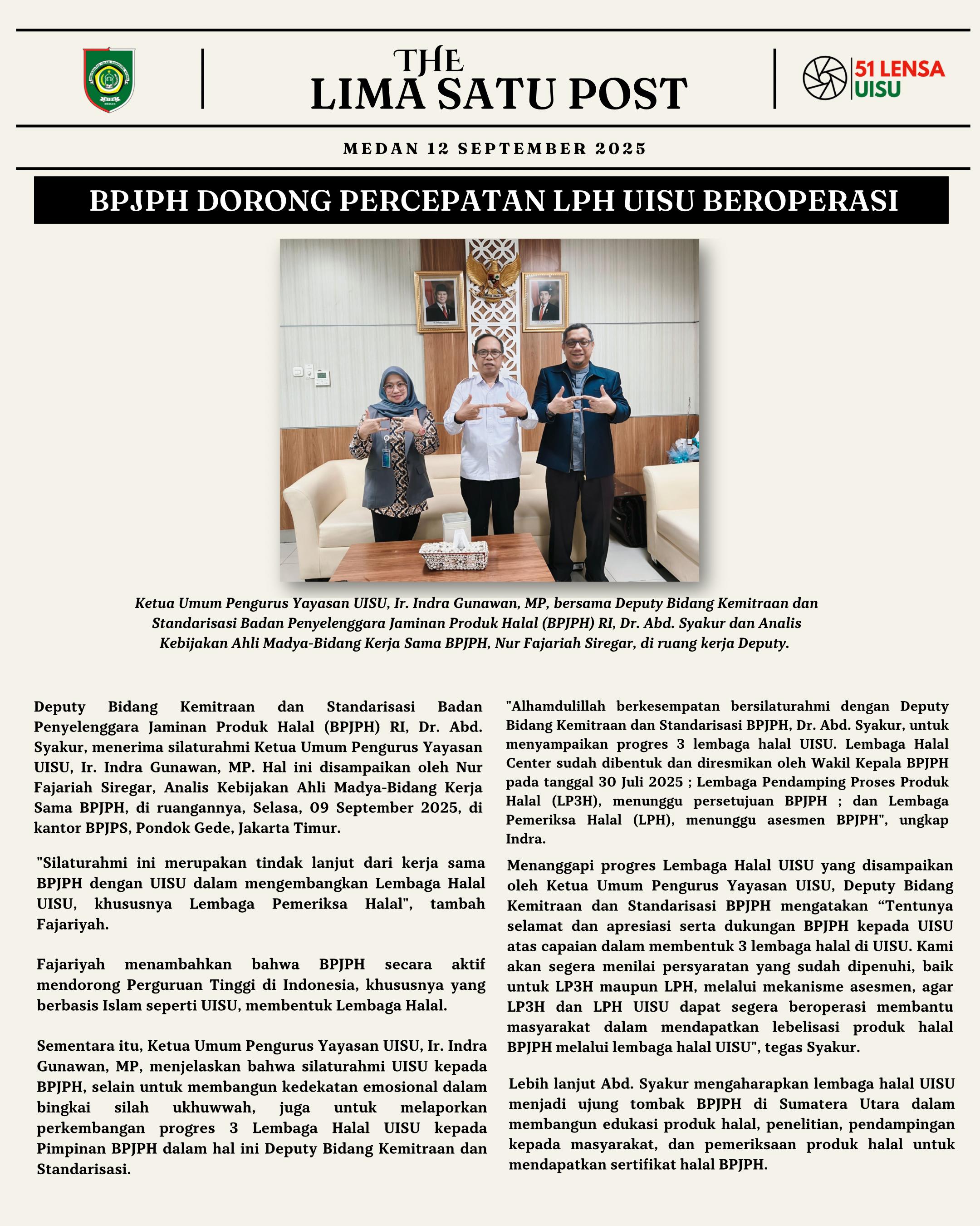 BPJPH dorong percepatan LPH UISU untuk segera bisa beroperasi...